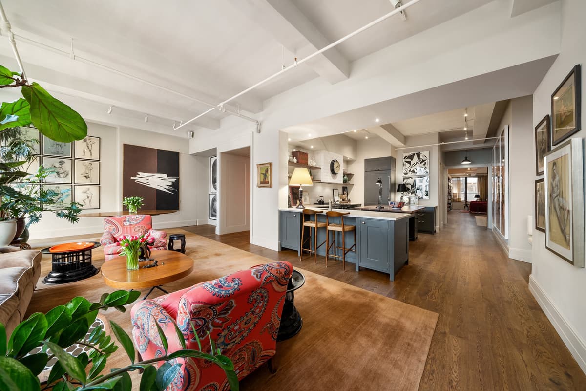 The reno opened up the space and added high-end finishes, appliances, and fixtures, and now the loft is asking $5,800,000. The owners are selling because they bought in a new development with more space, according to the broker. Maintenance is $4,871.