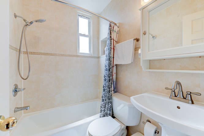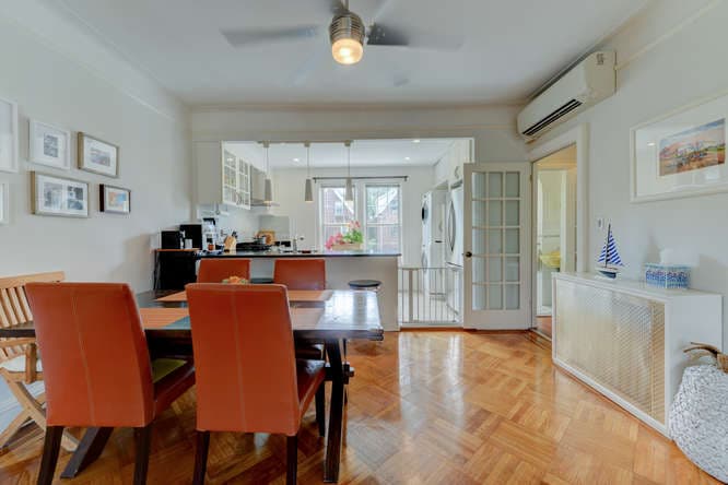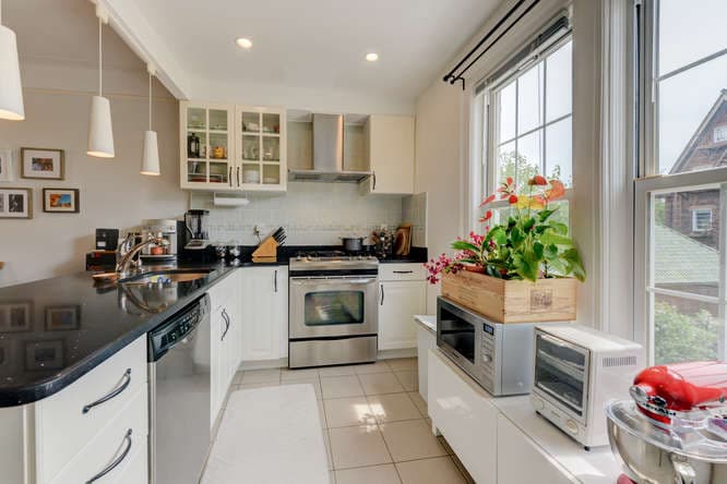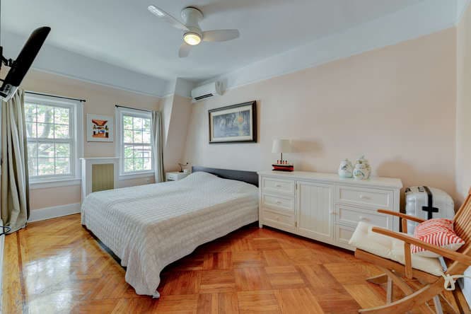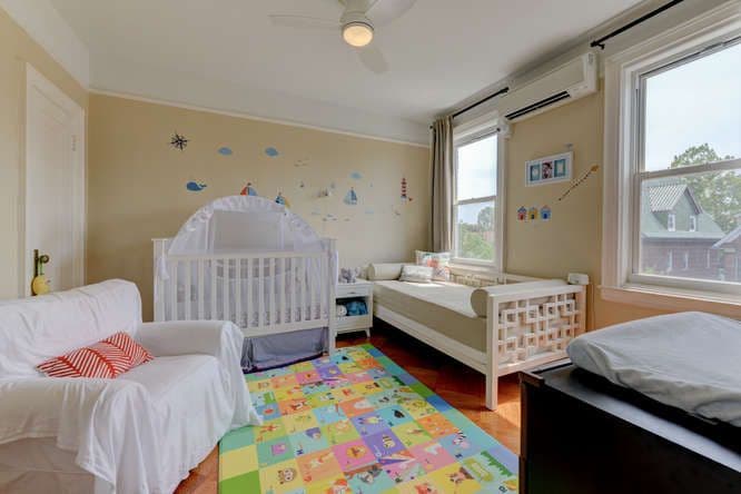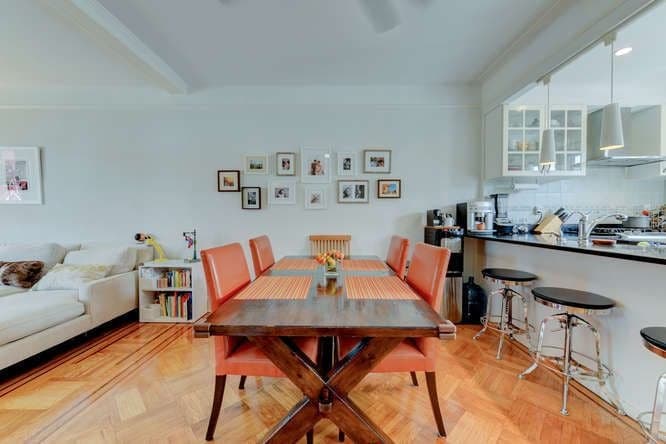 Here's what makes it unusual: It is described in the listing as having a "mother-daughter" layout, a indication that although it has two apartments, it is probably classified as a single-family property by its certificate of occupancy, which means you can't live in one apartment and rent the other one out.