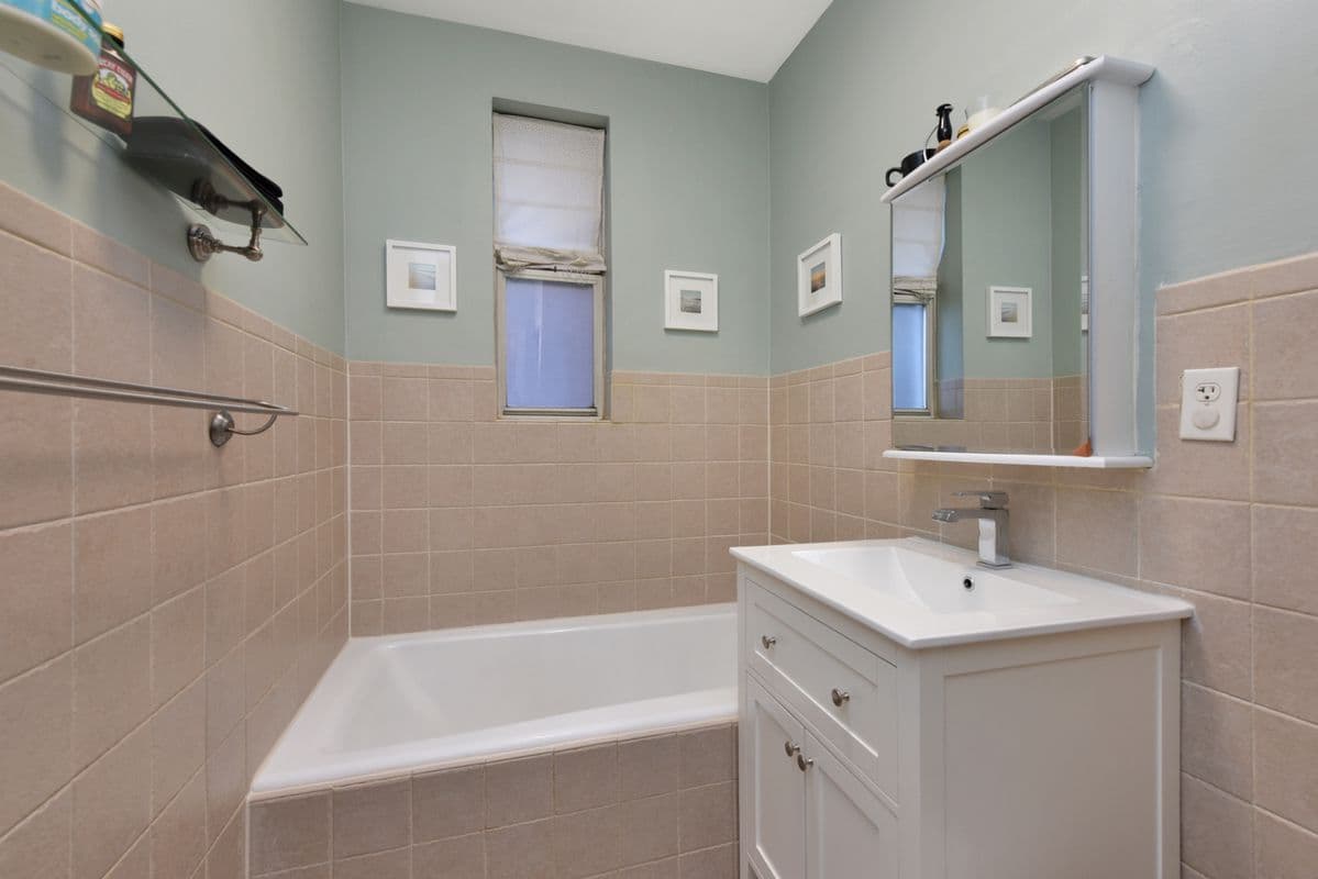 The bathroom has been recently updated, and has a separate tub and shower.