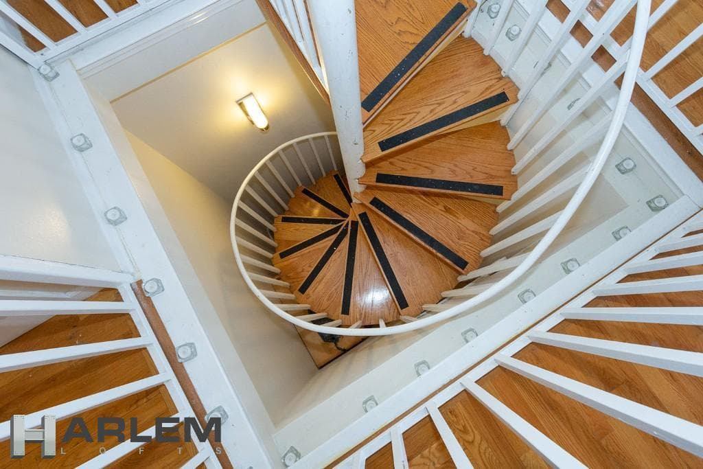 The three-bedroom, two bath duplex measures 1,775 square feet and also features a spiral staircase. (Note that the triplex and the duplex each share half of the parlor level.)