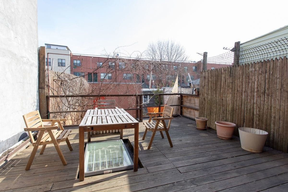 The parlor floor has an open layout, with bonus features such as the original window shutters, a wood-burning fireplace, and even a swing. A private wood terrace can be accessed from this level as well.
