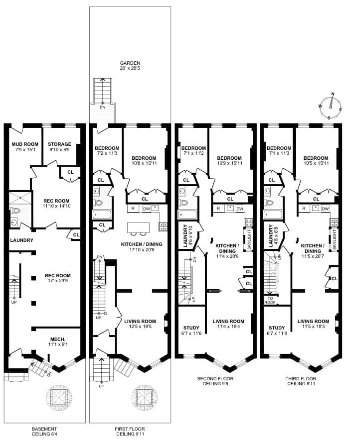 The townhouse is well situated for convenience, with options for shopping and dining along several major avenues, including Classon, Bedford, and Nostrand. Additionally, the Bedford-Stuyvesant YMCA is down the block. The A and C trains are seven blocks away at Nostrand Avenue, and the G at Bedford and Nostrand is a five-block walk.