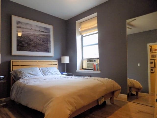 The apartment is on the top floor of the 20-unit building, and has hardwood floors; closets in each room; and north, south and west exposures.
