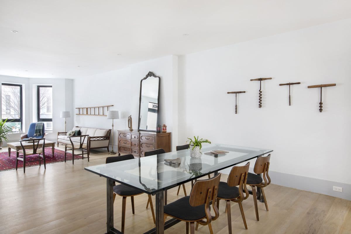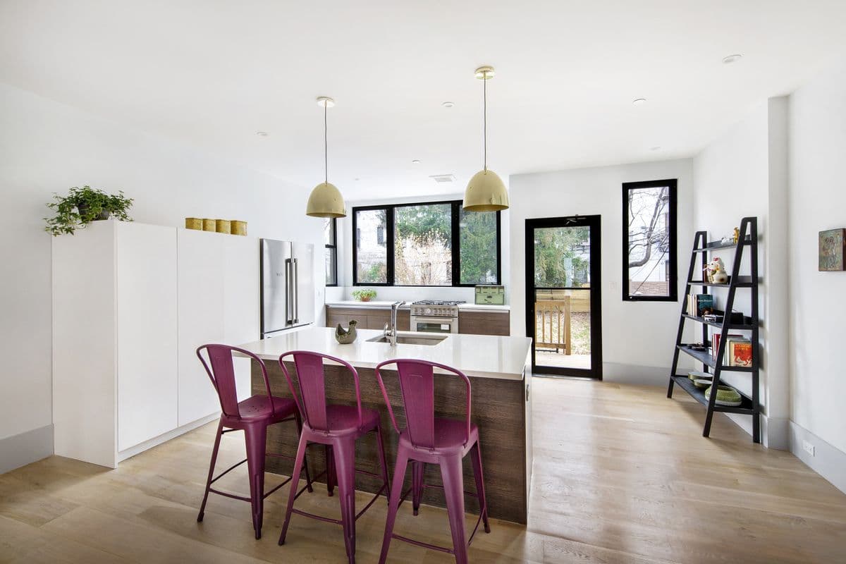 Gather up your copies of "Kinfolk" magazine and check your bank balance. This two-family limestone, 19 Clarkson Ave. in Prospect Lefferts Gardens, is staged as a design aficionado's boho Brooklyn haven (nod to the antique tools on the wall). Listed for $1,995,000, the three-story was built in 1910, and sits on a lot that is 20 feet wide and 120 feet deep. It appears to have been fully renovated.