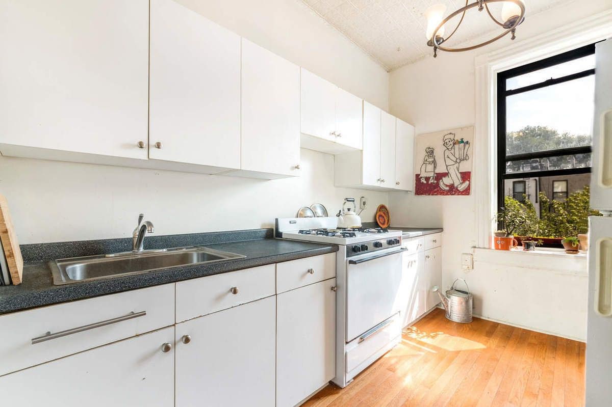 The second floor rental has two bedrooms, and looks to get nice light. The listing says it rents for $2,000 a month.