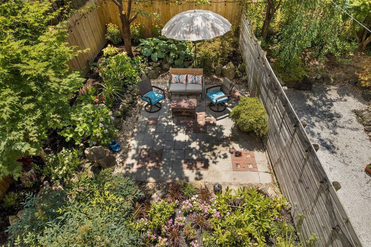 The second bedroom on this floor has a terrace that overlooks the south-facing garden, and there is a third bedroom on this level as well.