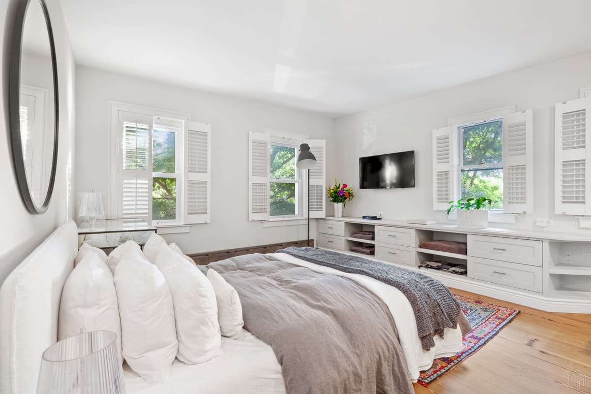 On the second floor, the master bedroom features two exposures and treetop views.