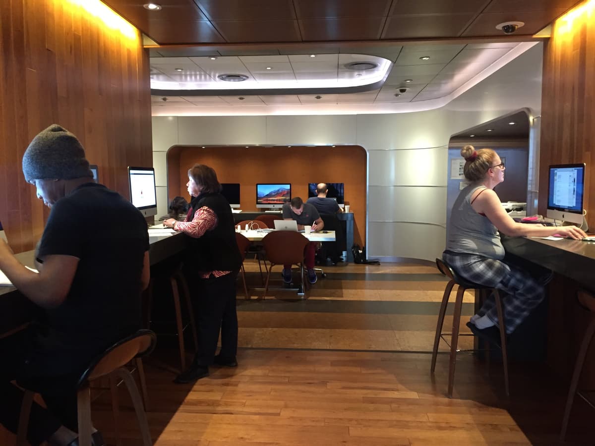 There are numerous seating options, ranging from stools along a ledge, to large tables, to work stations with computers; alternative spaces, located just outside the work center are more lounge-like, but would also be a good place to hunker down. (For example, there was a large, round booth in the quiet billiards room.) For those wanting to work al fresco, one of the terraces is steps away as well.
