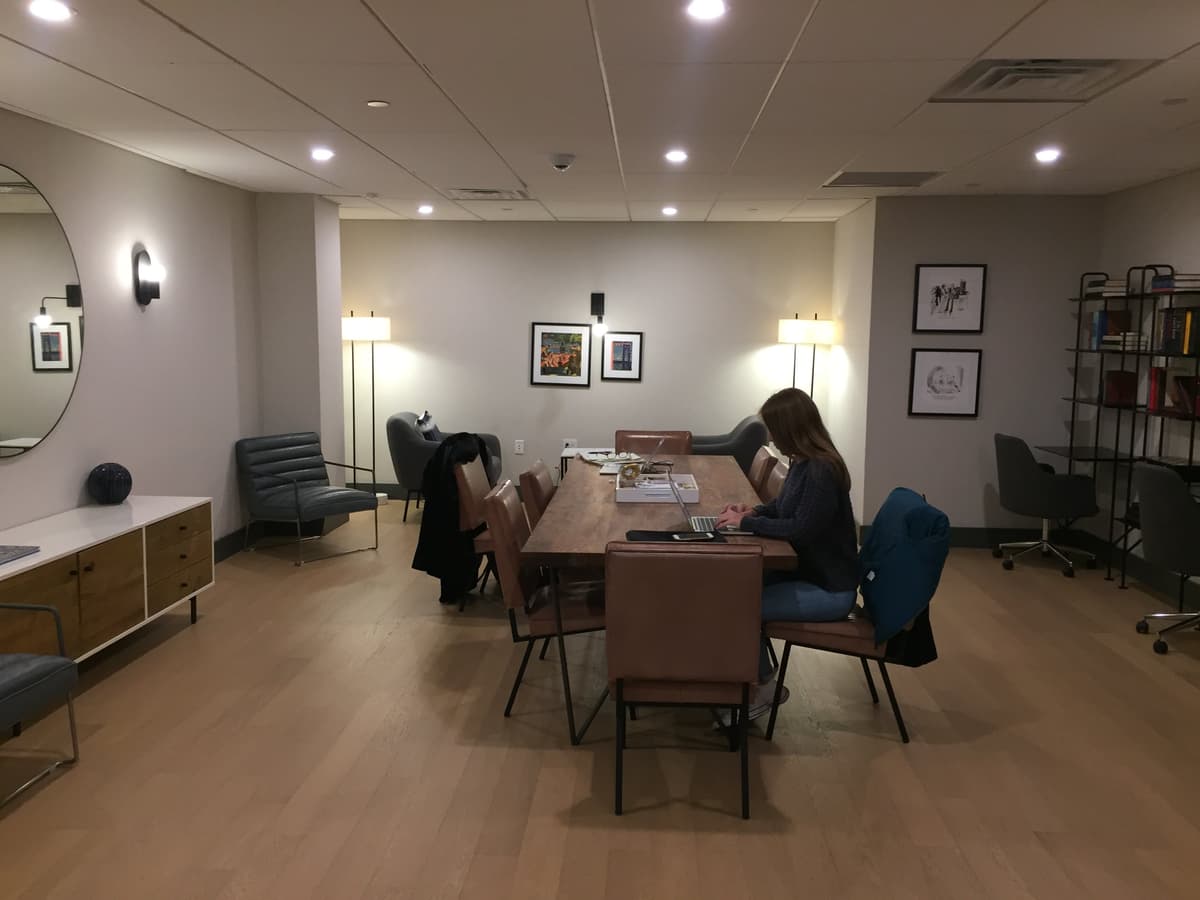 When we stopped by mid-morning on a weekday, the main co-working space was pretty quiet, with just one other person using it, but it's hard to imagine a space in a complex this huge ever being uncomfortably crowded (except maybe the gym or the massive landscaped rooftop on a perfect summer eve).
