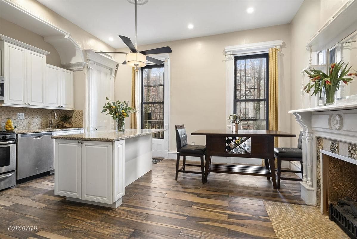 Not only does this Bedford Stuyvesant brownstone at 594 Madison St. have tons of original details, two rentals, and a recent renovation, it's been featured on Bravo's interior design show "Get a Room with Carson and Thom," hosted by former "Queer Eye for the Straight Guy" stars Carson Kressley and Thom Filicia. The duo redid several rooms, including a bedroom that now sports pink unicorn wallpaper. (Check out Bravo's before-and-after pictures showcasing the transformation).