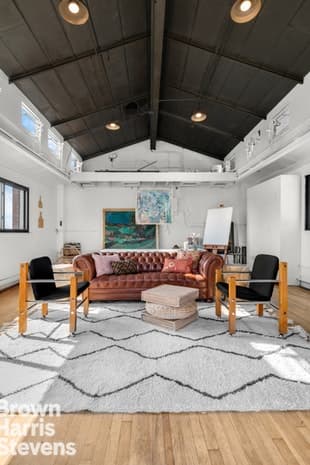 What takes this co-op truly over the top is the separate studio located on the roof. The personal escape has a raw metal roof that is more than 13 feet at its peak, double industrial-style doors, and clerestory windows with original hardware (it was built in 1920). Beyond the fact that it's an amazing retreat/office/entertaining space, you'll also find a washer/dryer setup and utility sink in here. FYI: it sounds like an urban myth, but this rooftop structure housed Ex Lax test monkeys back in the day. Really.