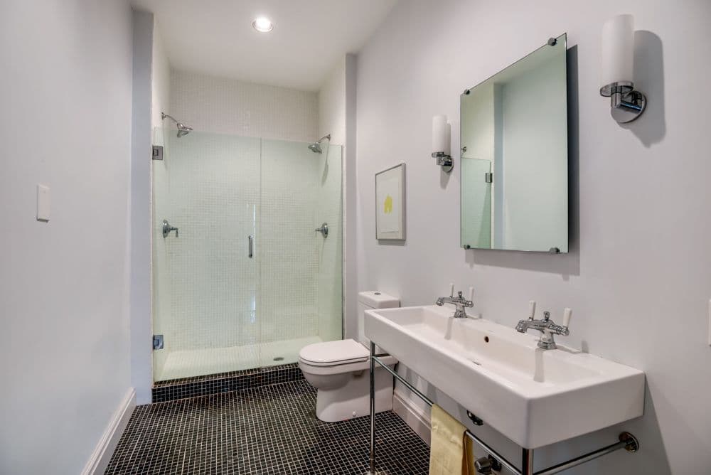 A rental studio apartment with an open floor plan is on the garden level. It has partial access to the back yard.