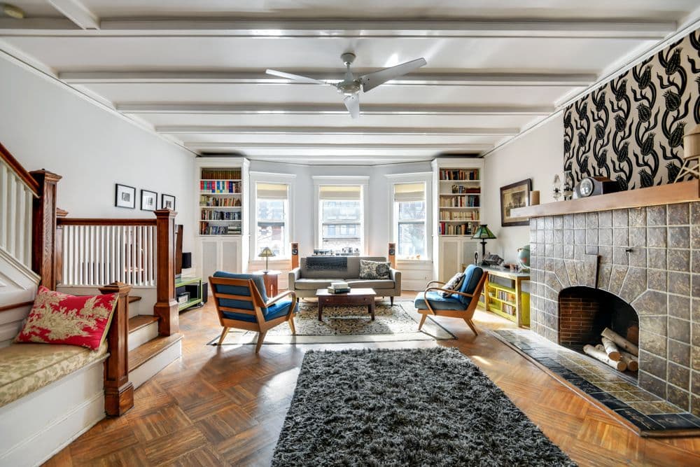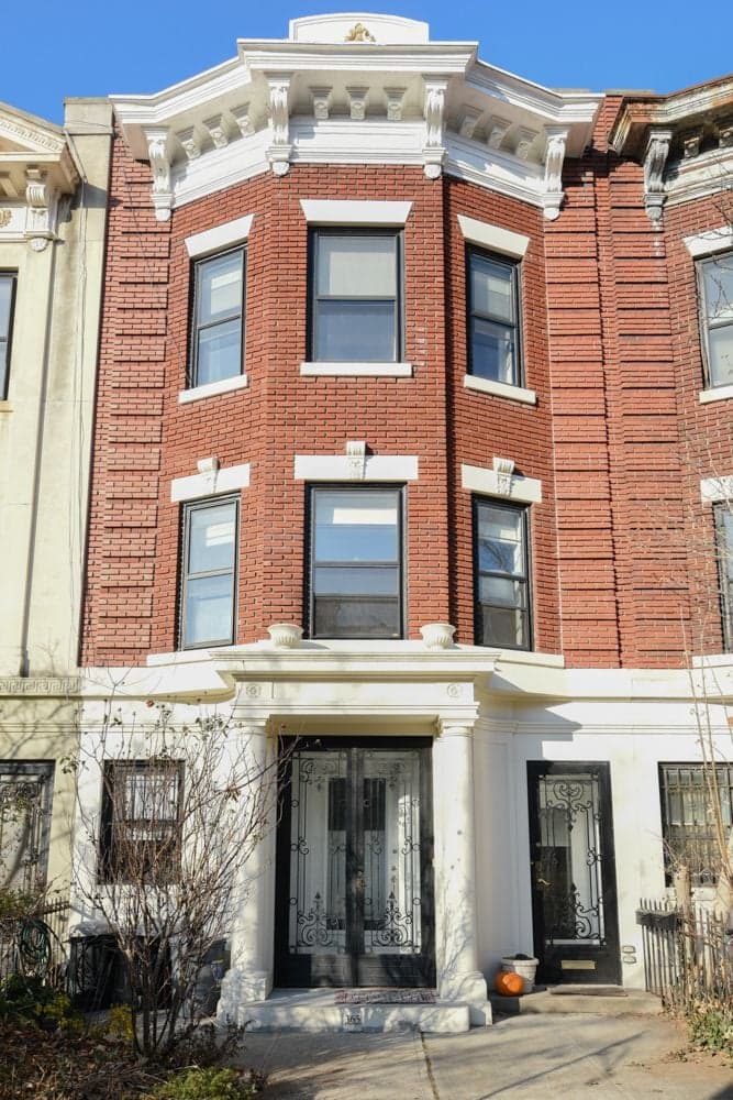 Located in the "Doctor's Row" section of Prospect Lefferts Gardens, the townhouse has lots or original details including decorative fireplaces, oak parquet floors, crown moldings, and even a separate "doctor's" door.