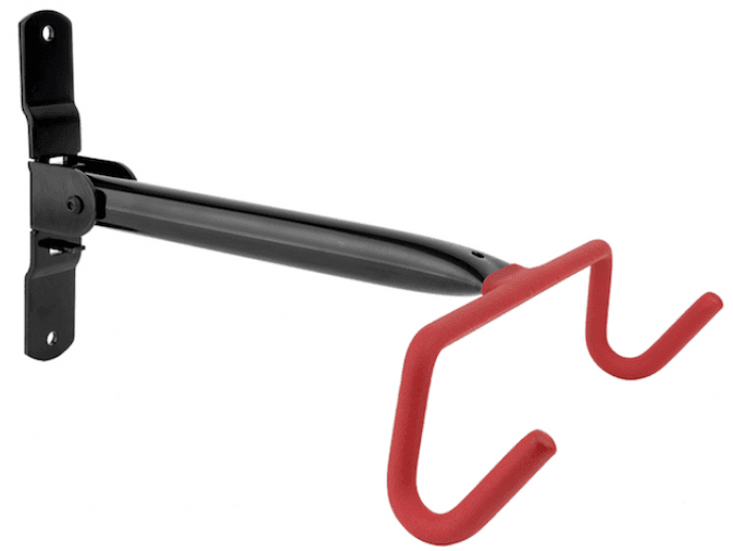 This bike rack, which comes with the hardware you’ll need to attach it to the wall, folds up when it’s not in use.