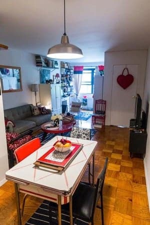 Then I saw an L-shaped alcove studio and realized studios had more flexibility than I thought. I was shown a similar alcove studio—this one was rent-stabilized in a luxury doorman building—and I knew I could make that one work for me with some creativity, but there were some major bumps along the way (more on that in a moment).
